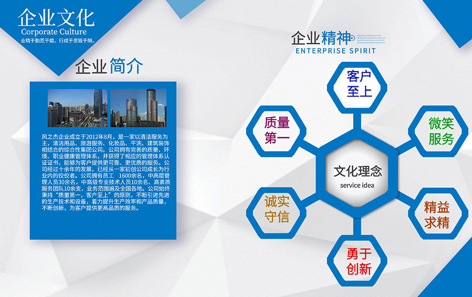 公司于2012年8月成立,致力于將9年的線下管理經(jīng)驗進行線上整合,復(fù)制推廣,力爭打造一個全國性的家庭服務(wù)平臺,并基于家庭服務(wù)的大數(shù)據(jù),融合人工智能,整合服務(wù)資源,為家庭提供全方位,多保障的管家式服務(wù),目前風(fēng)之杰已與全國百余家企業(yè)簽署戰(zhàn)略合作,通過全體員工堅持不懈的努力,逐步布局全國,完善服務(wù),提高品質(zhì),一切努力,只為盡我所能,凈你所想。